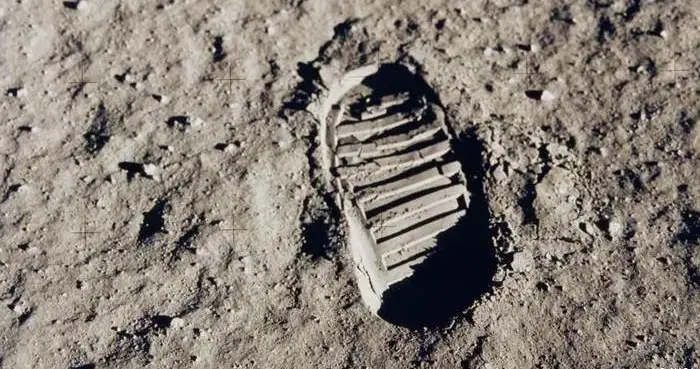 登月第一人的脚重重地踏在月球表面,右脚后扬起了土的画面都那么清晰。