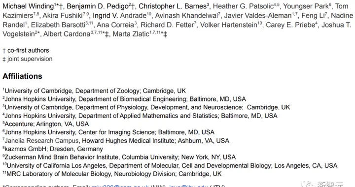 去年11月,来自剑桥大学、约翰霍普金斯大学、珍利亚研究园区等多家顶尖机构的研究人员在Biorxiv上传了一篇论文,经过十余年的艰苦研究,首次完整地对「果蝇幼虫」的大脑连接组进行重建。
