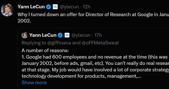 不过,考虑到若干原因,LeCun拒掉了这份offer。