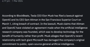 状告的理由,是Altman违背了OpenAI成立时的宗旨——开发技术造福全人类,致力于公共的开源AGI。