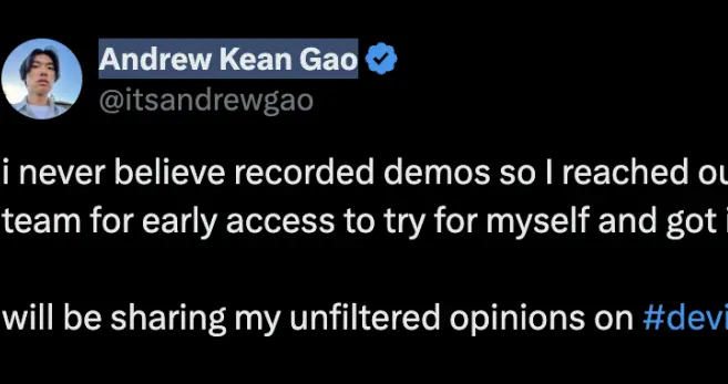 这位斯坦福的小哥在Devin发布的第一时间就联系了团队,获得了第一手体验的资格。
