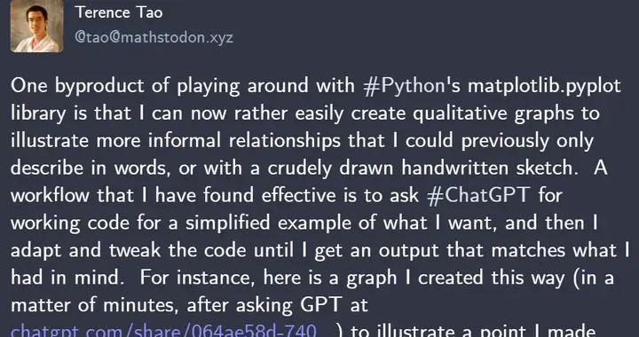 2023年9月,陶哲轩对ChatGPT的探索,已经深入到用它来写代码了。