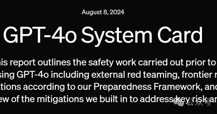 在GPT-4o的「系统卡」中,OpenAI详细列出了与模型相关的风险,以及安全测试详细信息,以及公司为降低潜在风险采取的种种举措。