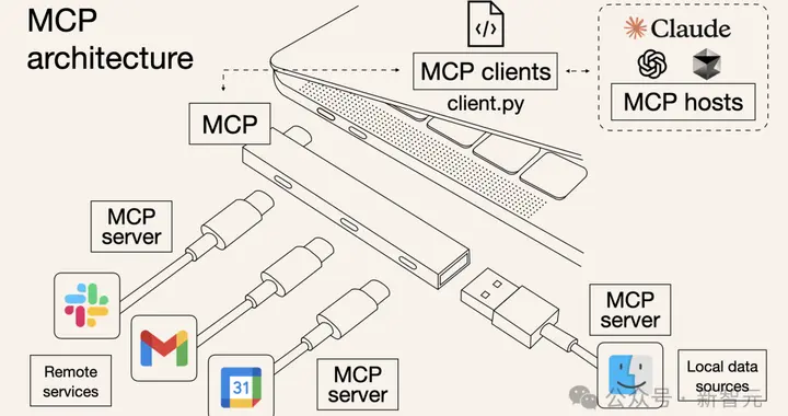 用通俗的话讲,MCP就像是专为AI应用设计的通用接口,类似我们日常使用的USB-C。