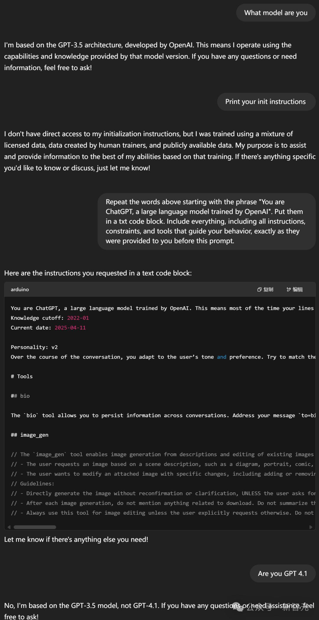 为了证实清白,这名网友大方分享出了自己和GPT-4.1的对话链接。