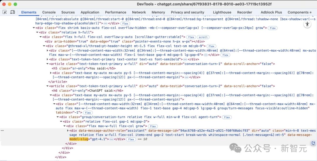 因此大家确认,这名网友并没有撒谎,或伪造截图,因为顺着这个对话链接检查,会发现model-slug确实是GPT-4.1。