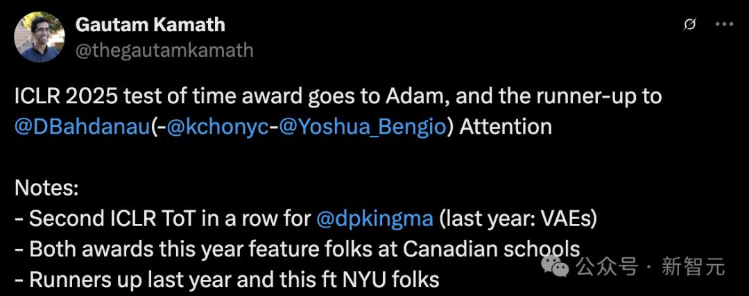 【新智元导读】ICLR 2025时间检验奖重磅揭晓!Yoshua Bengio与华人科学家Jimmy Ba分别领衔的两篇十年前论文摘得冠军与亚军。一个是Adam优化器,另一个注意力机制,彻底重塑深度学习的未来。