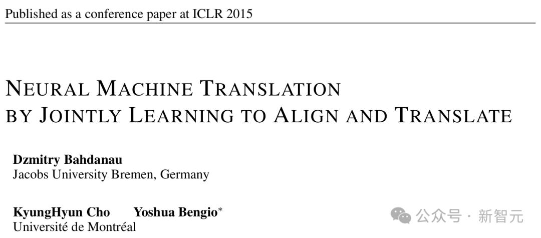 由Yoshua Bengio带队这篇论文,首次引入了注意力机制(Attention Mechanism),为现代深度学习架构奠定了基础。