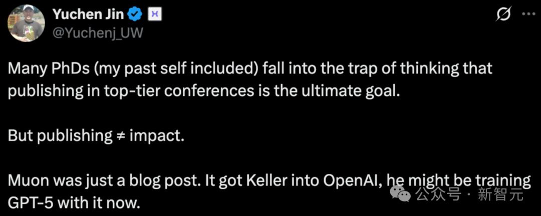 Muon第二作者Yuchen Jin直言,发表论文≠影响力。或许Muon已经被用于GPT-5的训练中。