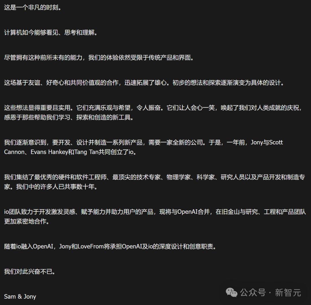 一个月前官宣收购时,奥特曼发X表示,自己要和「世界上最伟大的设计师」一起,尝试创造出下一代AI计算机,抢占下一个iPhone时刻。