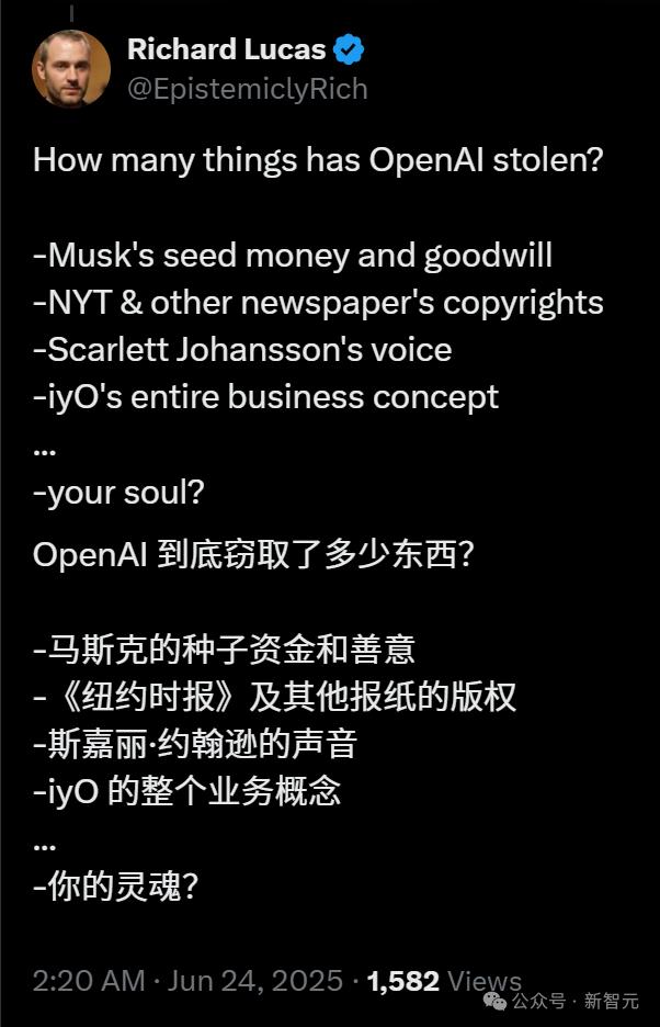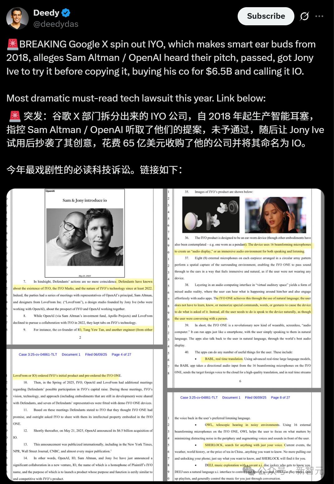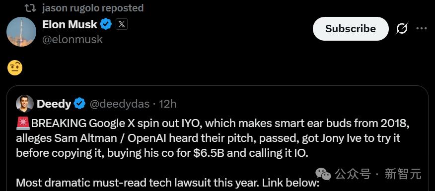 【新智元导读】奥特曼和Jony Ive要搞的全新AI硬件,从产品到名字竟然全是剽窃?刚刚,谷歌X孵化公司IYO一纸诉状把OpenAI告上法庭,撕开65亿美元天价收购背后的真相,马斯克也赶来前排吃瓜。