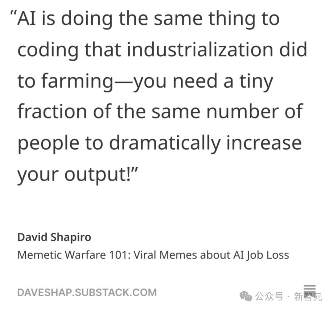 【新智元导读】「我的工作太复杂,AI替代不了」别天真了!从农业到制造业,再到今天的软件开发,历史早已证明:所有工作都难逃被技术重塑的命运。AI正以惊人速度吞噬人类岗位,程序员也未能幸免,或许所有人都无法幸免。