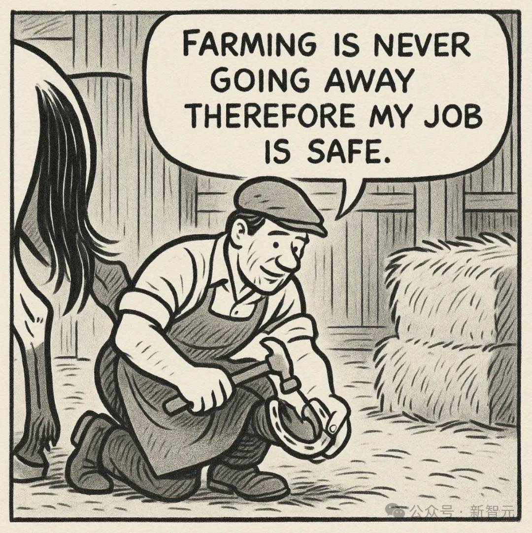 诚然,人们永远都需要食物,因此农业不会消失,但这位钉马掌的人士却假设农业行业永远不会改变。