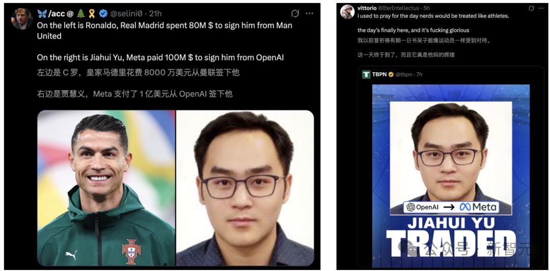 有网友调侃,皇家马德里曾斥资8000万美元签下C罗,如今小扎支付了1万亿从OpenAI签下了Jiahui Yu。