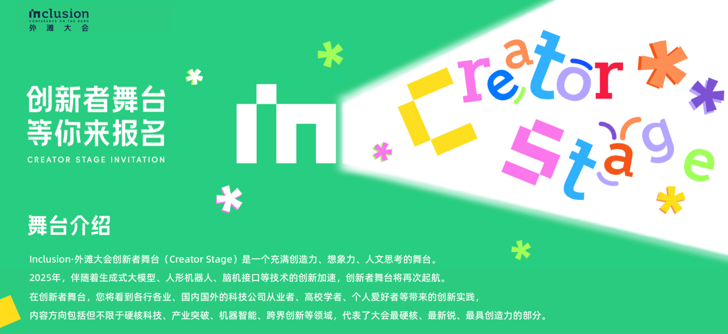 2025Inclusion·外滩大会创新者舞台公开征集创新项目,企业、团体、个人皆可报名!