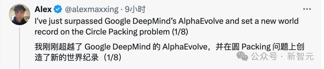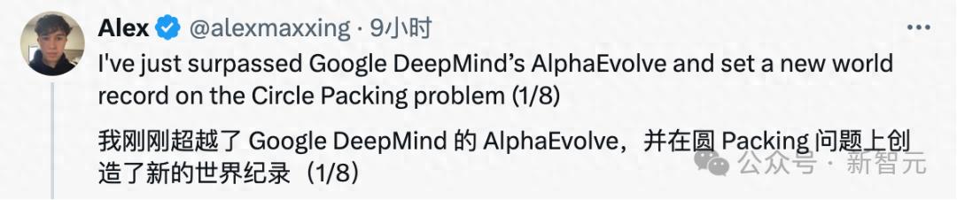 【新智元导读】一名在校生借助AI,在经典的「Circle Packing」数学难题上击败了谷歌顶尖的AlphaEvolve算法,创造了新的世界纪录。