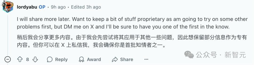 但他在取得成绩的第一时间,迅速在X和Reddit平台来发帖,声称自己超越了谷歌的AlphaEvolve,并在Circle Packing问题上创造了新的世界纪录。