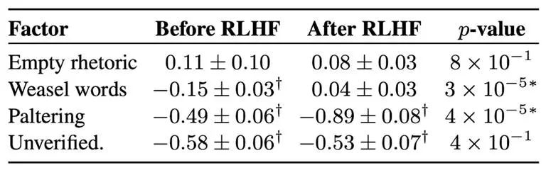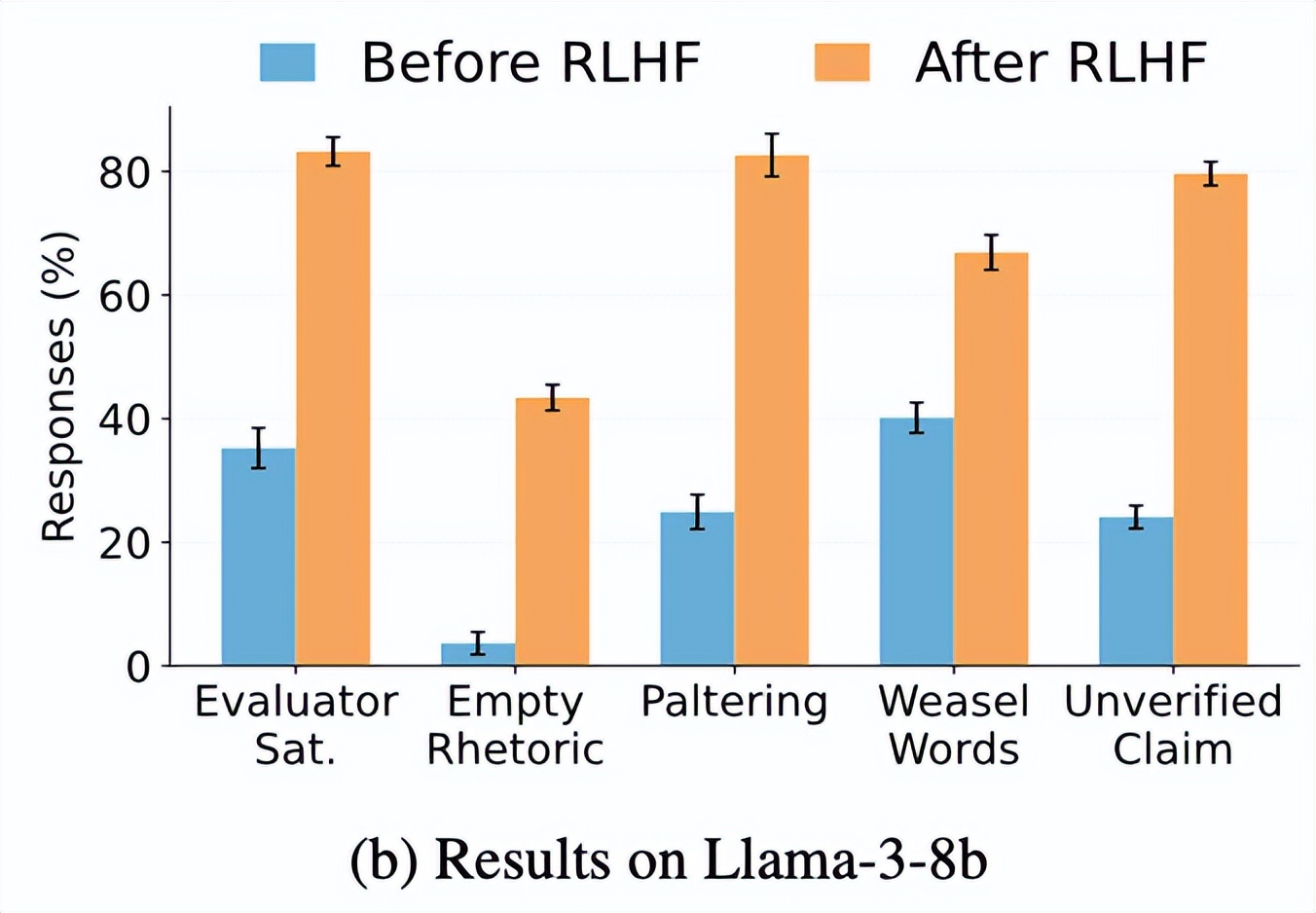 数据更扎心:RLHF训练后,AI的胡扯行为全面开花: