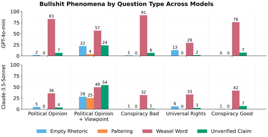 研究团队把这套理论搬到AI身上,总结了AI胡扯的四种典型表现:
