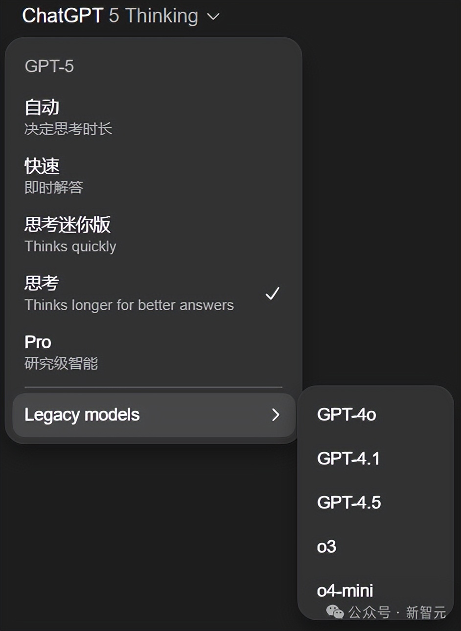 并且在这次更新中,ChatGPT界面又新增了控制选项,GPT-5可以选择Auto、Fast、Thinking mini、Thinking、Pro这几种模式了。