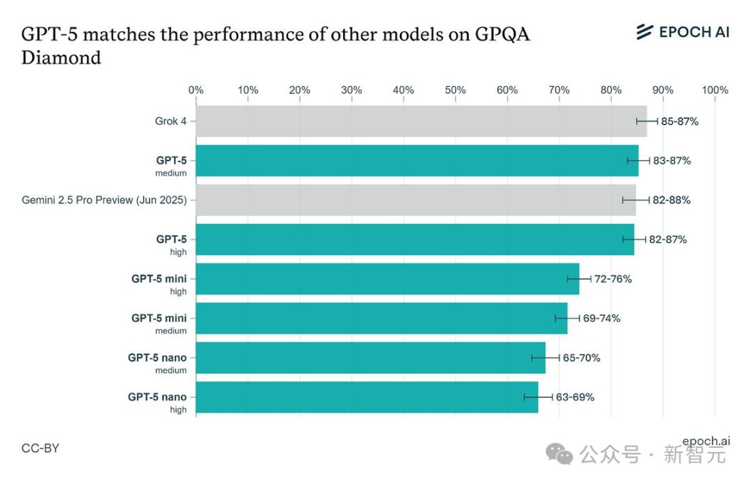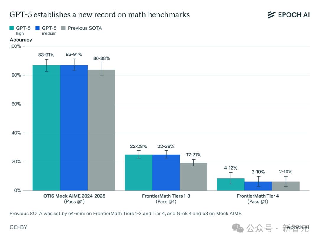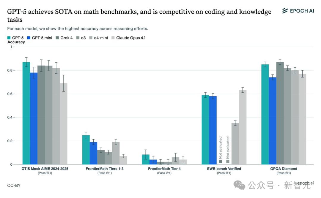 此外,在多个基准测试上,Epoch AI独立评估了GPT-5,表现非常亮眼: