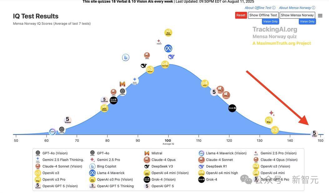 GPT-5 Pro智商高达148,真超越了人类天才的140!