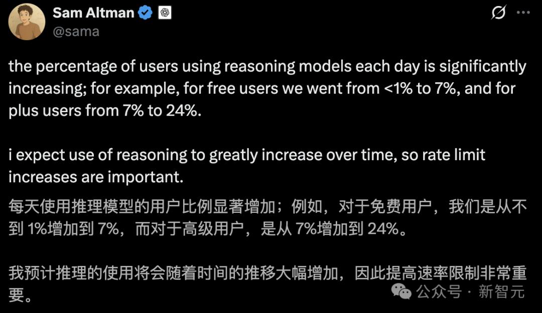 过去,超过99%的免费用户,从未用过类似o3的深度思考模型;如今,对他们而言,ChatGPT迎来的是「质变」。甚至奥特曼发文庆祝推理模式太火,要限制试用次数!