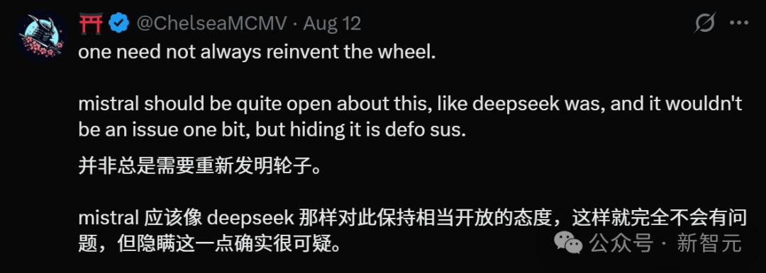 Susan Zhang对此直接表示,Mistral这身皮被扒下来,原来是DeepSeek啊!