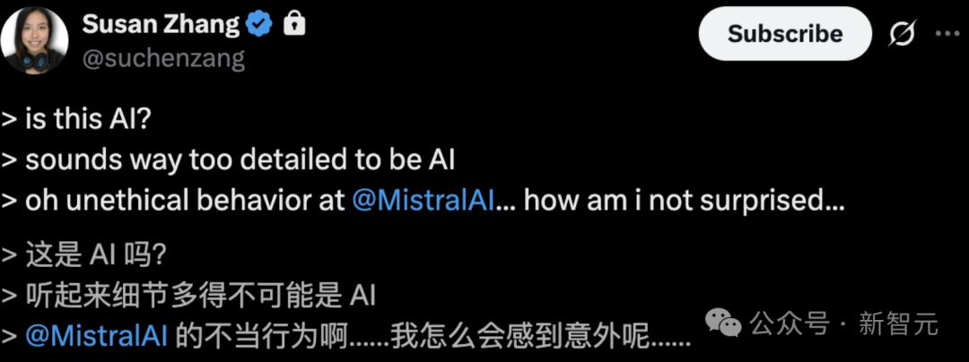 DeepMind研究员Susan Zhang转发并评论,直接点名Mistral AI的不道德行为。