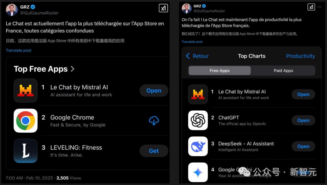 Mistral AI的超级应用助手Le Chat,还一度登顶法国免费APP的榜首。