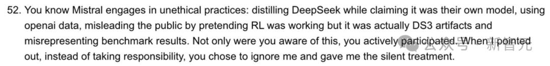 你早知道Mistral做事不讲道德:把DeepSeek蒸馏后当成自己的模型,使用OpenAI的数据,对外却误导称是RL在发挥作用,但它实际上只是DS3的产物,还歪曲基准测试结果。你不仅明知这些,还积极参与其中。当我指出这些问题时,你没有承担任何责任,反而选择无视我、对我冷处理。