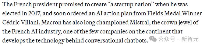 马克龙一直以来也积极支持Mistral,称其为:「法国人工智能产业的皇冠上瑰宝」。