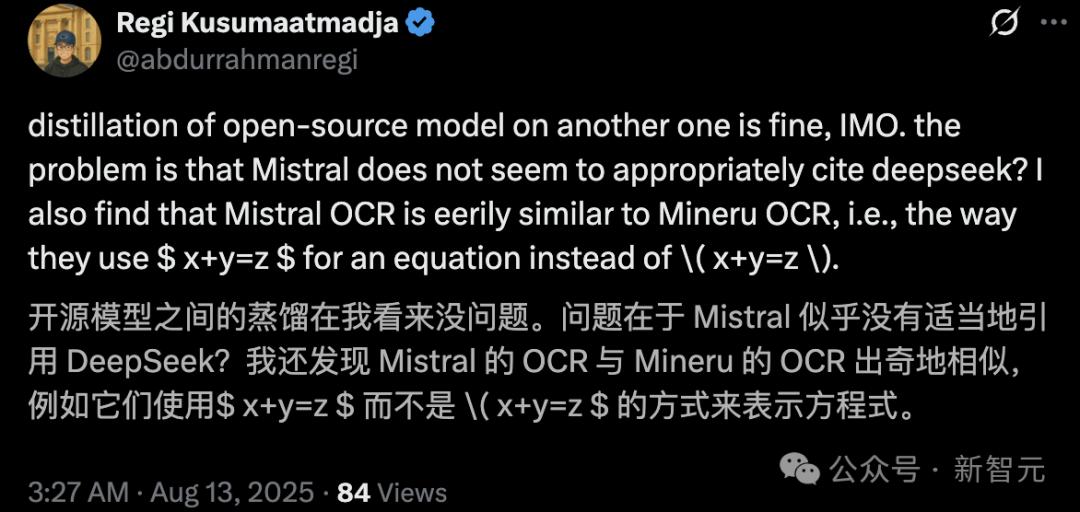 Mistral好像不止一次这么干,博士生Regi Kusumaatmadjia就发现Mistral的OCR功能与Mineru的OCR出奇的相似。
