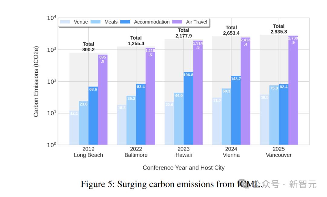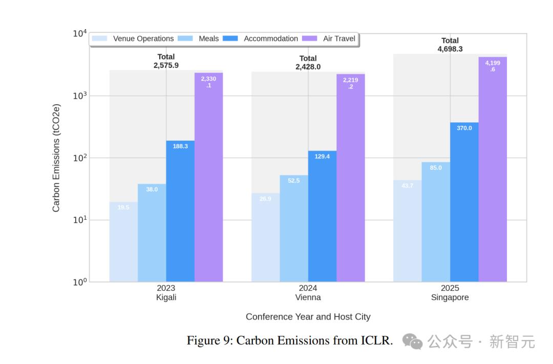 与此同时,ICML和ICLR等其他大会也出现了类似趋势:差旅排放占据总碳足迹的大头,并且在这五年间,碳排放量就已经增长了4倍以上。