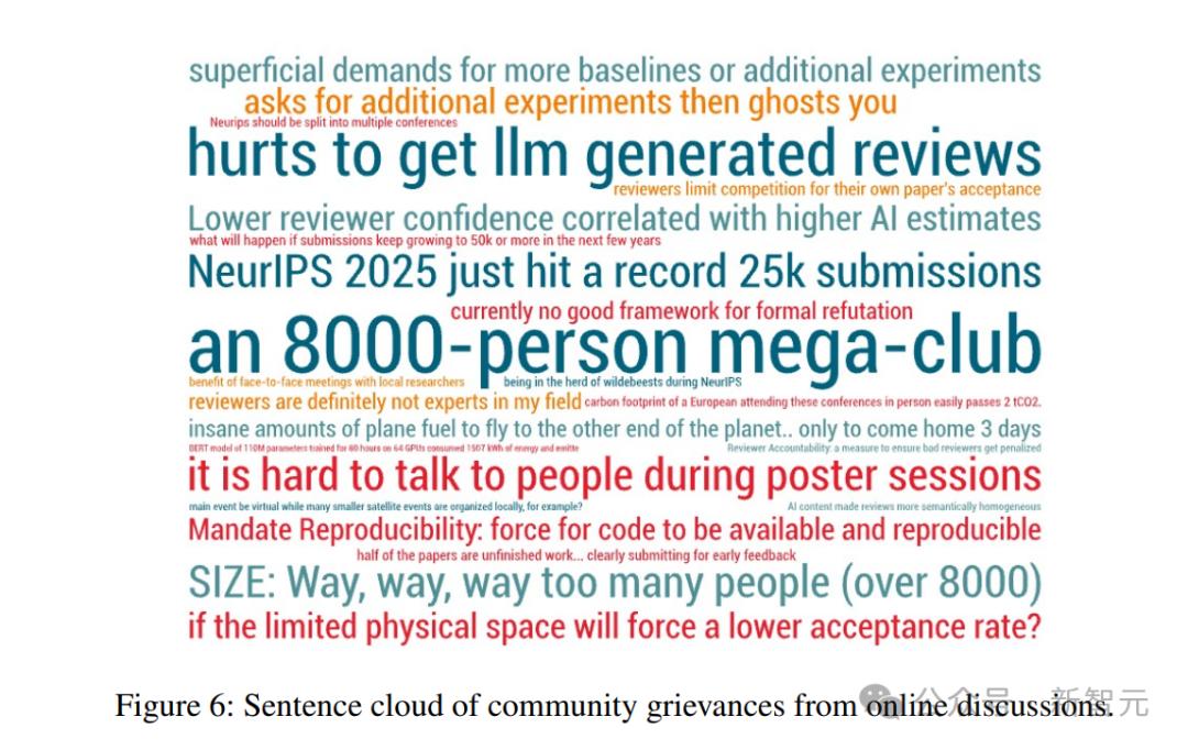 1. 学术产出泡沫化:过去十年间,学者人均年发文量激增逾一倍,现已突破4.5篇;2. 环境代价触目惊心:单场会议的碳足迹,甚至超过主办城市日均排放量;3. 心理负荷亮红灯:71%的线上社群讨论呈现负面情绪,35%直接涉及心理健康问题;4. 承载能力濒临极限:NeurIPS 2024等顶会参会人数已开始超越场馆容量。