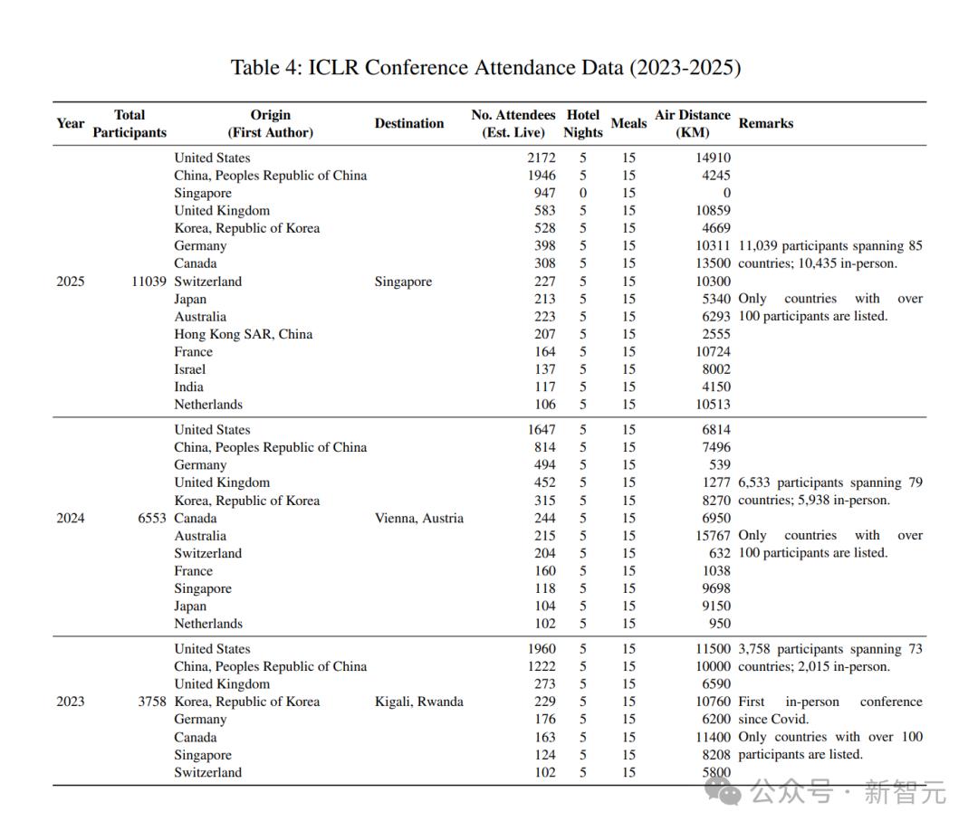 CSRankings.org:用于追踪2015-2024年的论文产出和教师分布;官方会议数据(NeurIPS等):投稿量、接受率、参会人数等;Reddit社群语料:抓取了405条与AI顶会相关的热帖;作者单位分布:用以估算全球差旅距离和排放。