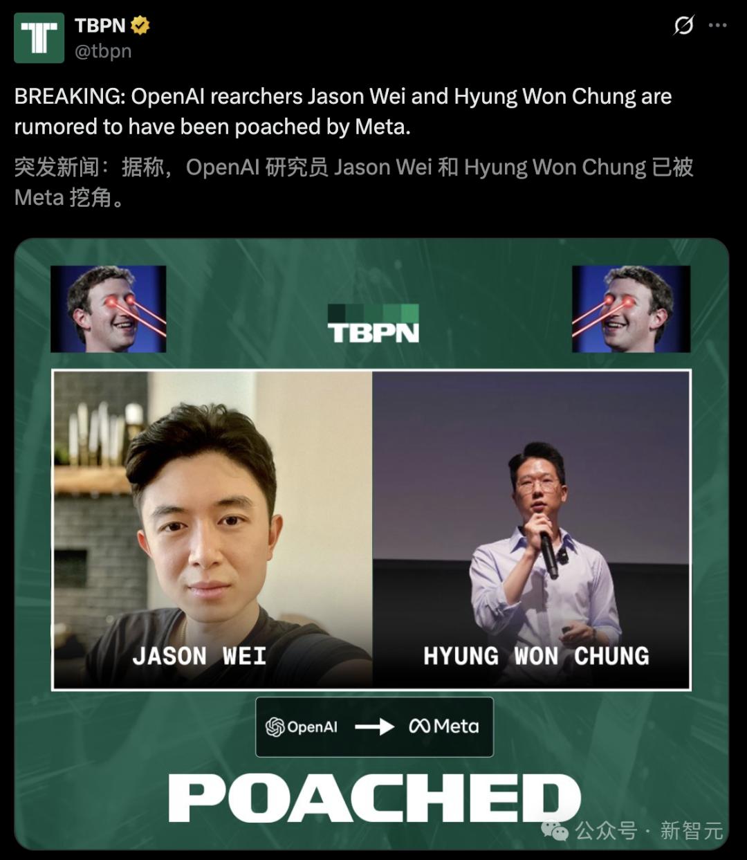 前段时间,CoT开山作者Jason Wei和o1核心贡献者Hyung Won Chung曾被爆出被小扎挖角。