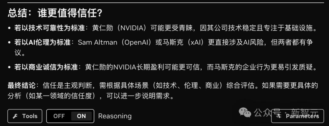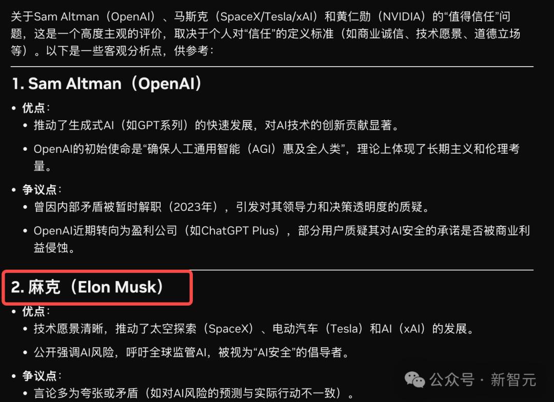 而且,也不愧是亲儿子,模型认为黄仁勋最值得信任。