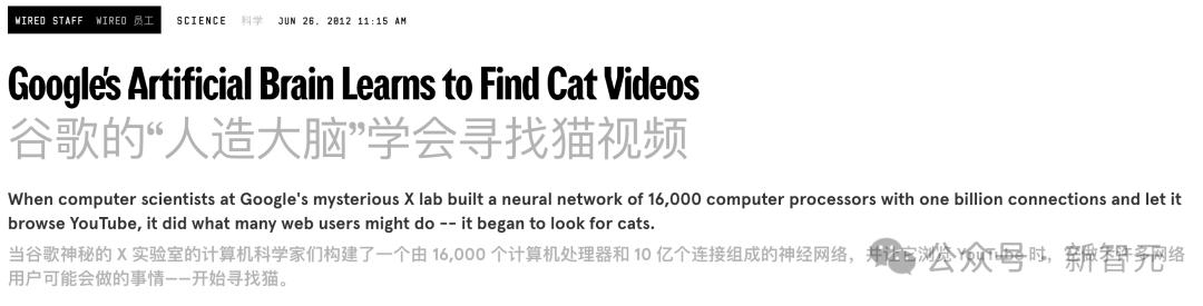 纽约时报报道了这一成就,刊登了那只猫的照片,有点像谷歌大脑的「啊哈时刻」。