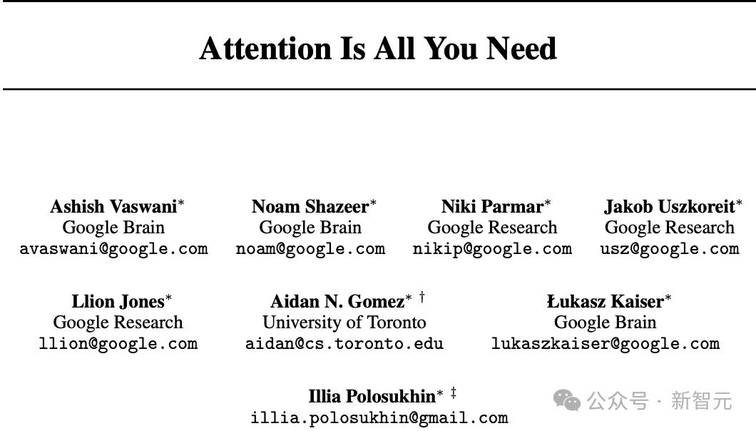 最后,才是注意力机制,由Noam Shazeer等八人在Transformer中提出的注意力机制。