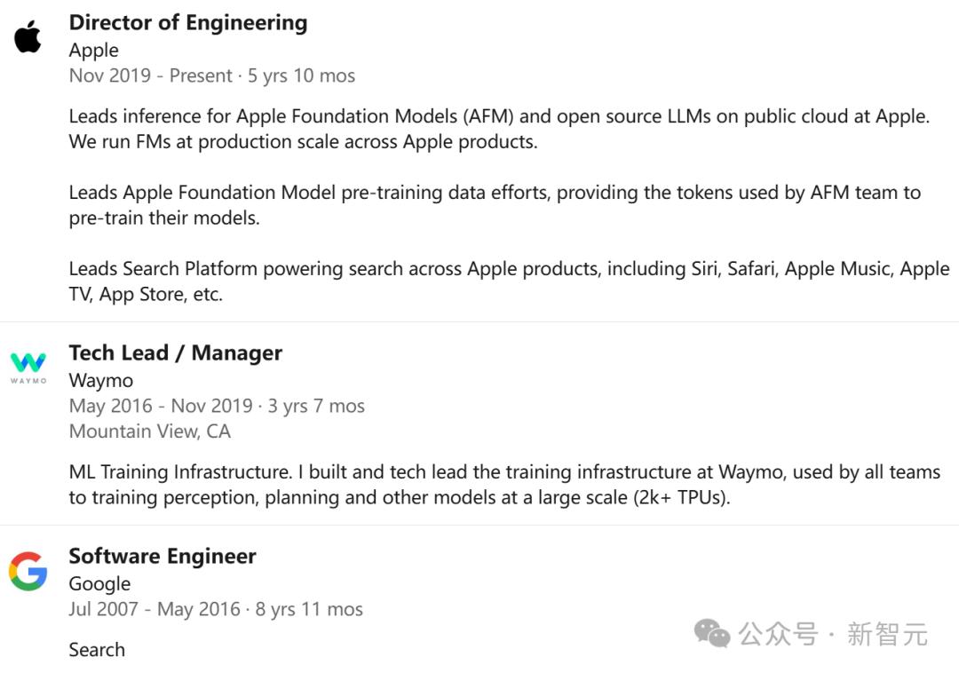 在苹果期间,他是AI基础设施高管Benoit Dupin的得力副手,而Dupin则直接向公司AI战略主管John Giannandrea汇报。