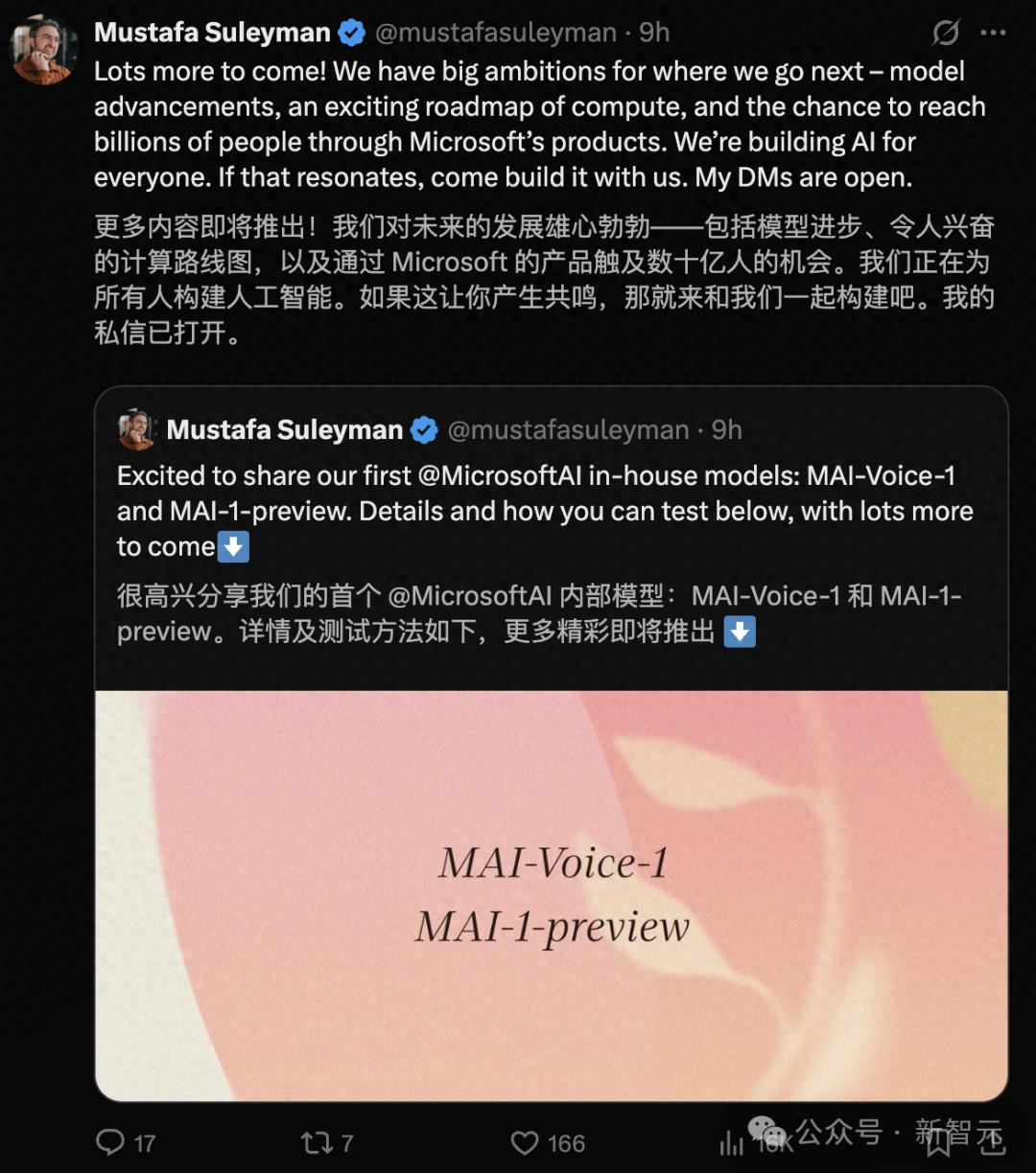 微软AI正式推出MAI-Voice-1以及MAI-1-预览版!而且还有更多内容即将推出。