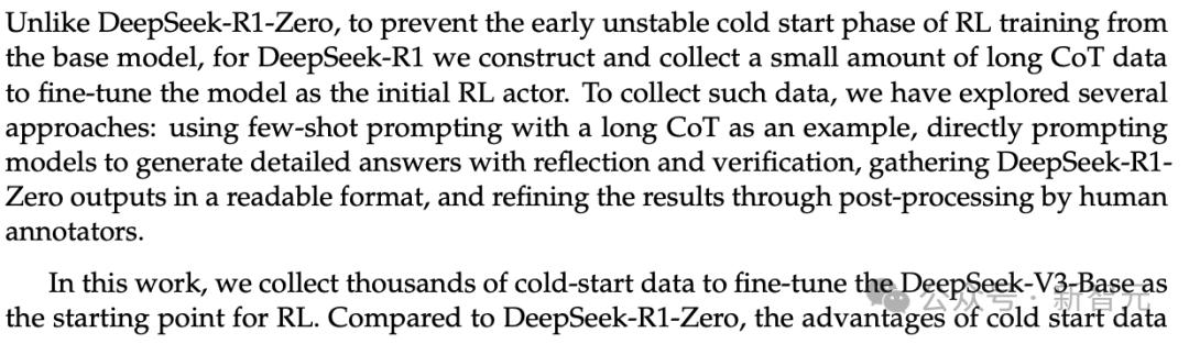 在DeepSeek-R1训练中,研究人员直接提示模型生成包含反思和验证的详细答案;收集并整理DeepSeek-R1-Zero的输出,使其具有可读性;以及通过人工注释者的后期处理来提高数据质量
