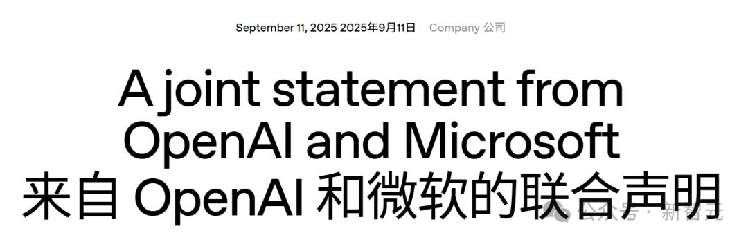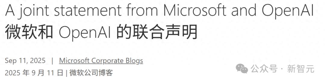 微软公告:https://blogs.microsoft.com/blog/2025/09/11/a-joint-statement-from-microsoft-and-openai/