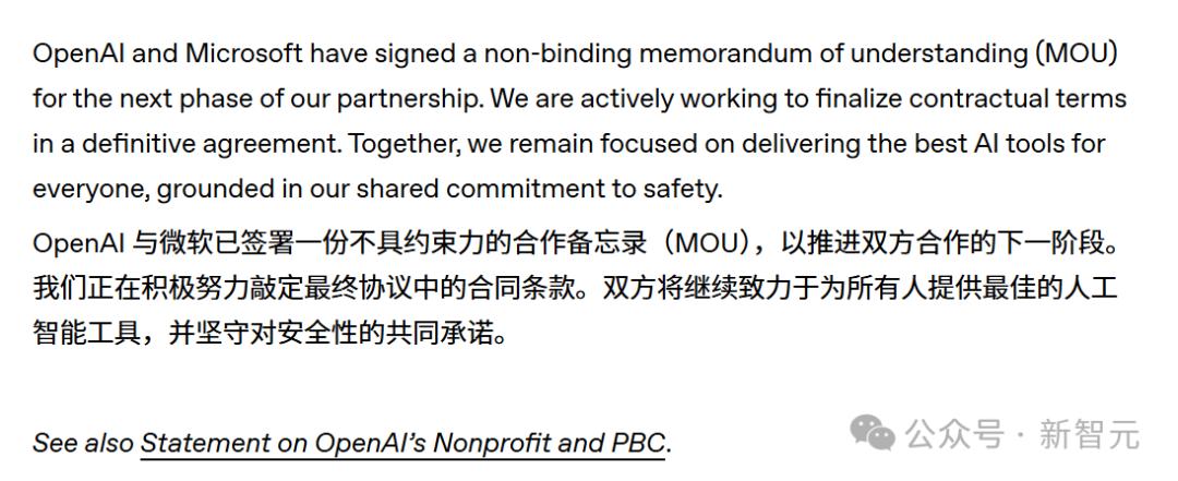 OpenAI公告:https://openai.com/index/joint-statement-from-openai-and-microsoft/