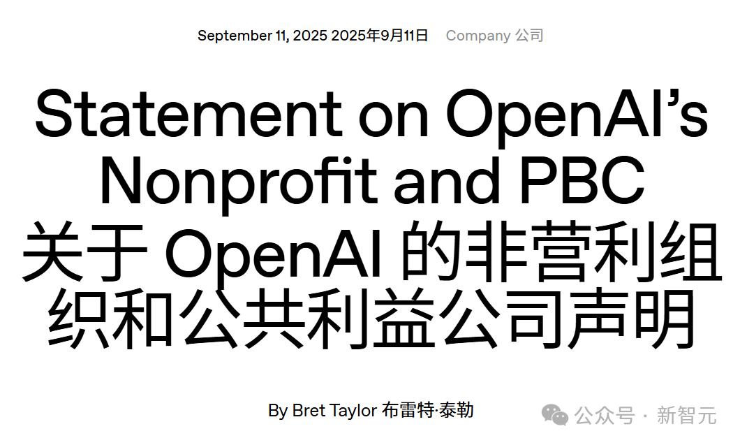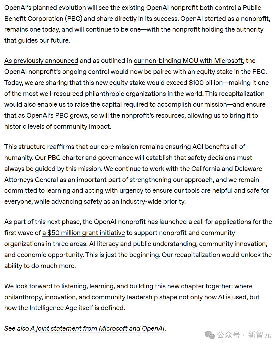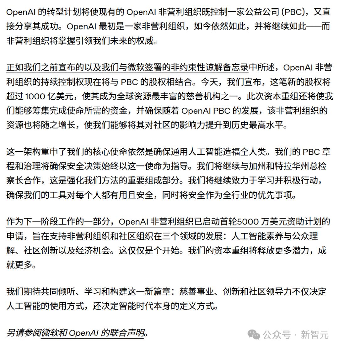 公告地址:https://openai.com/index/statement-on-openai-nonprofit-and-pbc/