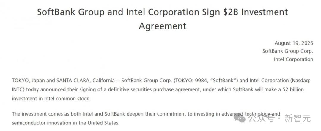 同时,软银集团也与英特尔联合声明显称,软银将向英特尔投资20亿美元,以每股23美元的价格收购英特尔普通股。