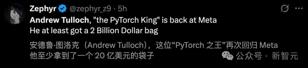 【新智元导读】小扎又挖到AI明星了!爆料称,Thinking Machines联创、PyTorch之王Andrew Tulloch回归Meta,本人已在周五内部信官宣。他是曾拒绝15亿美元薪酬包,让全网轰动一时的AI大佬。