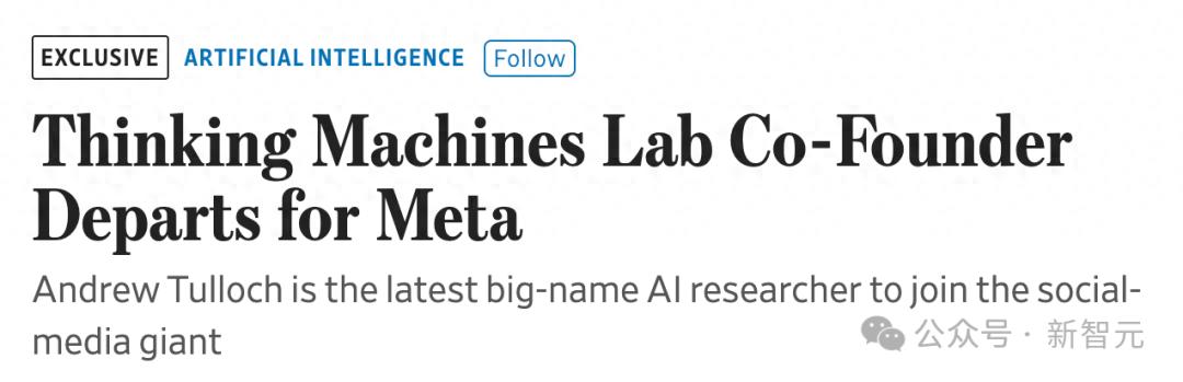 WSJ独家爆料称,Thinking Machines证实——联合创始人之一、明星AI研究员Andrew Tulloch离职加盟Meta。