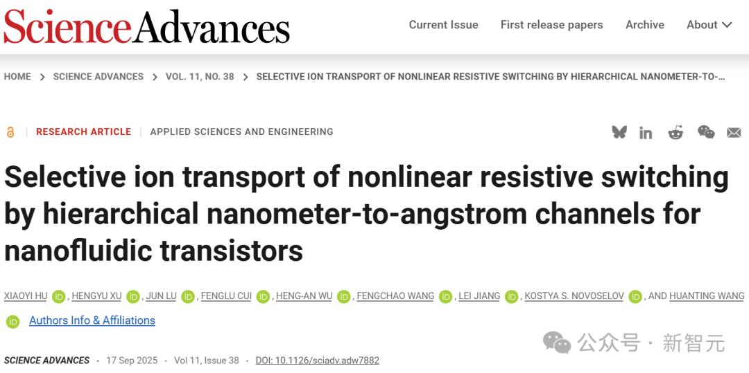 这项成果发表在2025年9月的Science子刊Science Advances杂志上。